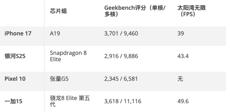 因此,你会期待iPhone 17e采用为标准iPhone 17机型提供动力的A19硅片。从性能角度来看,这是个好消息,因为iPhone 17的基准测试结果与最新的安卓手机相比表现良好。即使是搭载最新 Snapdragon 8 Elite Gen 5 芯片的 一加 15,在单核 Geekbench 6 整体性能测试中得分也低于 iPhone 17。(在其他测试中,一加15的表现更好,这也符合新芯片的预期。)